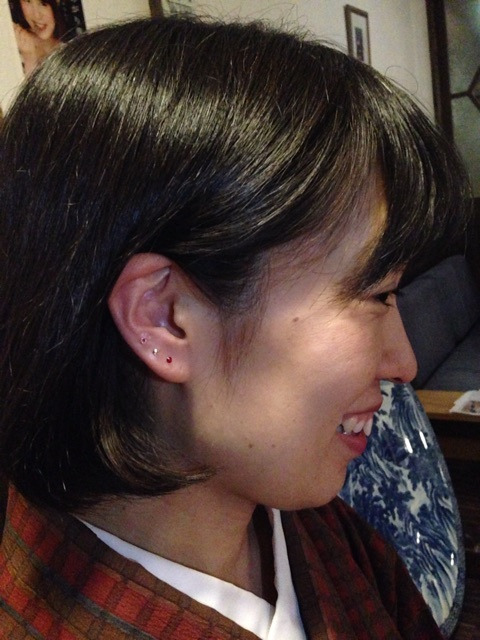 温泉に入って血流を良くした後に耳つぼジュエリーをしてもらうと