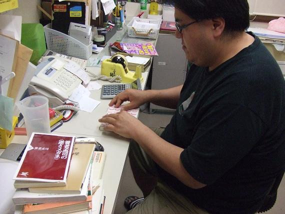 本のカバーが外れないように、テープでとめていきます。