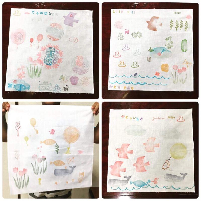 思い思いにハンコを押して、世界に一つだけの手ぬぐいやハンカチが完成(╹◡╹)♡