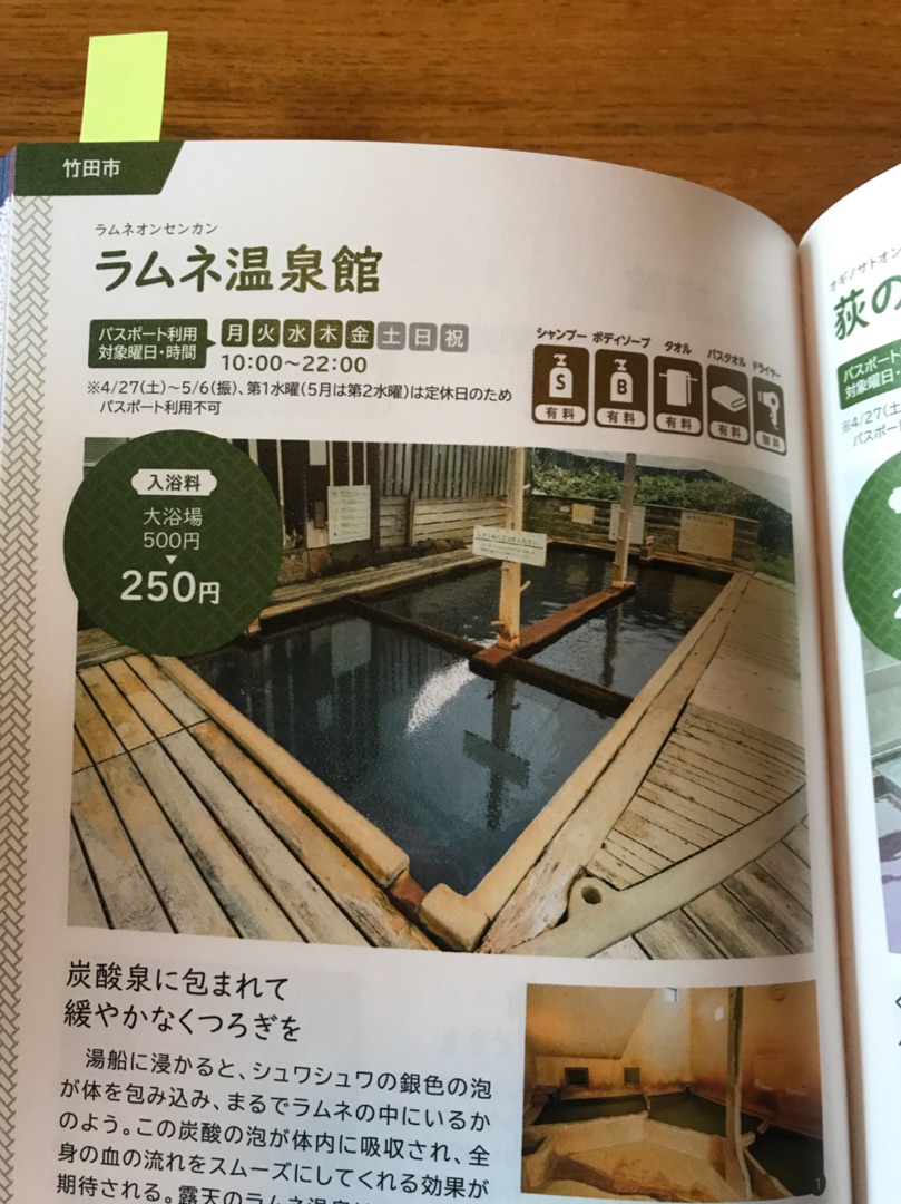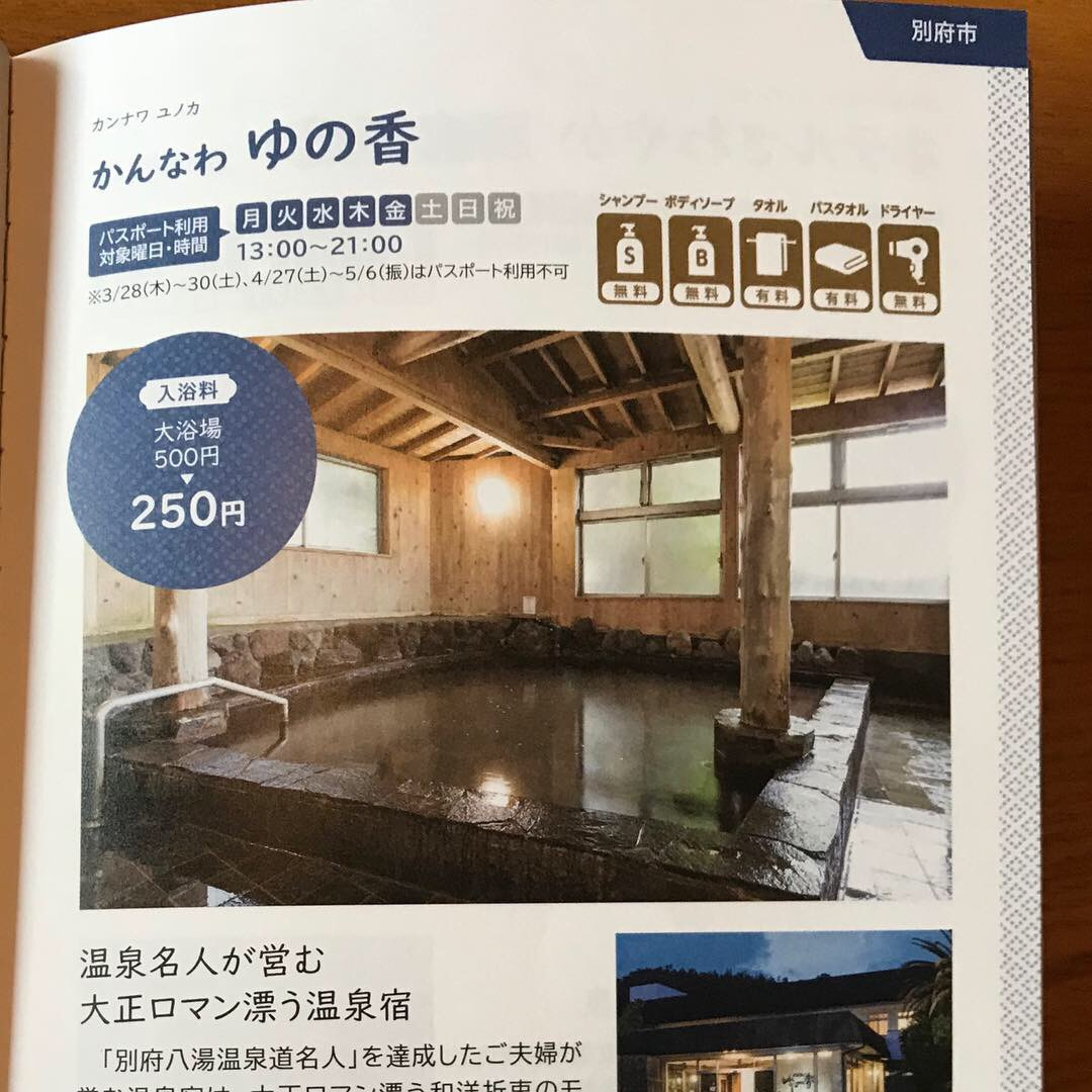 湯めぐりパスポート発売 2019.01.31 温泉 お知らせ ツイート 温泉好きな皆さまへ! 本日「湯めぐりパスポート」が発売となります。 この「湯めぐりパスポート」があれば、掲載施設の温泉に半額でご入浴いただけますよ。 しかも一冊につき3回まで! 別府だけでなく、大分市、竹田市、耶馬渓…と大分各地の温泉施設が掲載されています。 ゆの香の大浴場も対象となります。 通常500円→250円です。 有効期限は2月1日から7月19日までです。 利用不可の日は各施設によって異なりますのでご注意くださいね。 ※ゆの香は月曜から金曜までご利用いただけます♨️