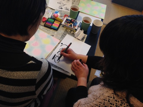 昨日、「笑音&ゆの香の筆もじ教室」が、当館にて開催されました!