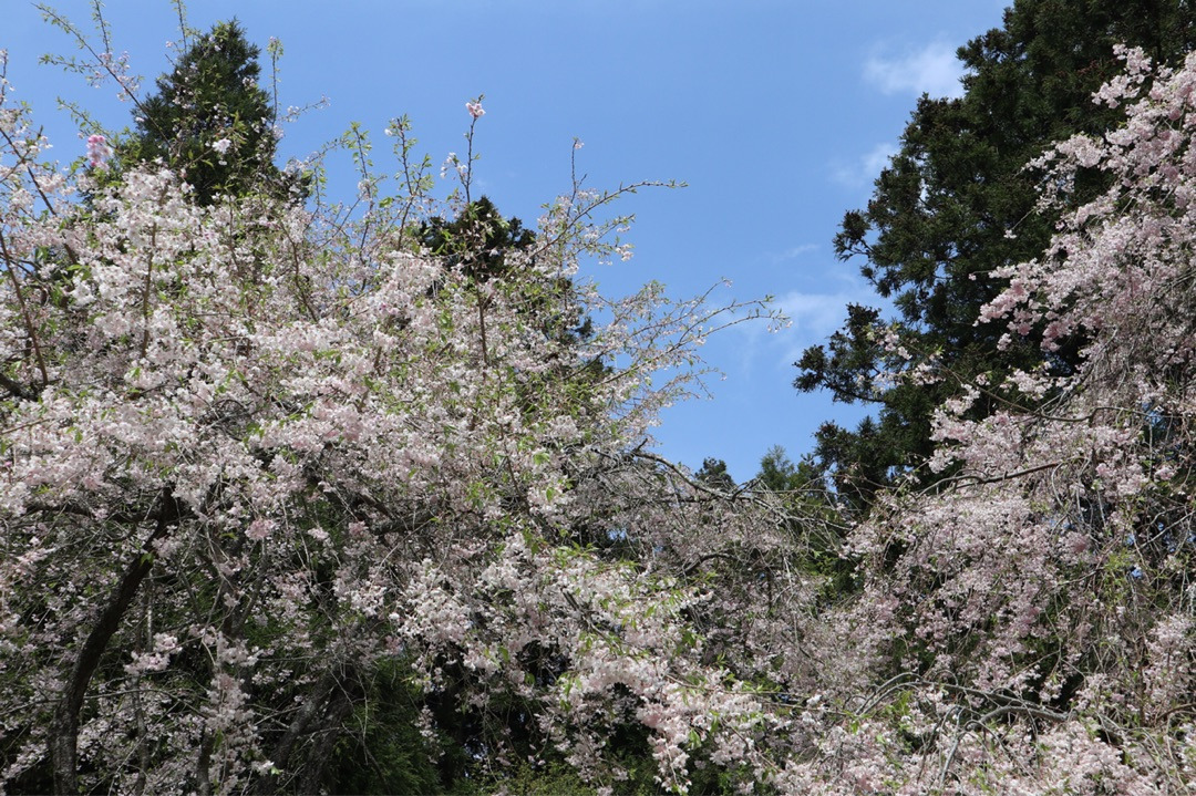 塚原高原は標高が高いので、桜がまだ残っていました。