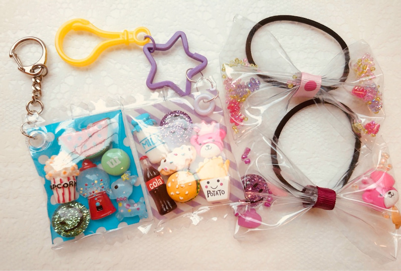 たくさんのスイーツや動物などの小さな可愛いパーツを選んで、クリアケースに詰め込めば、