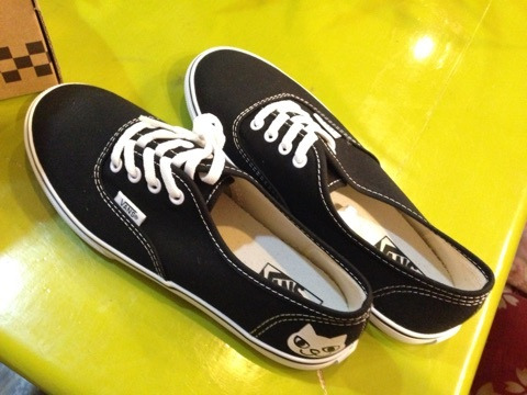 最初から印刷されているVANSのロゴの上にニャンコを描き足してます(笑)